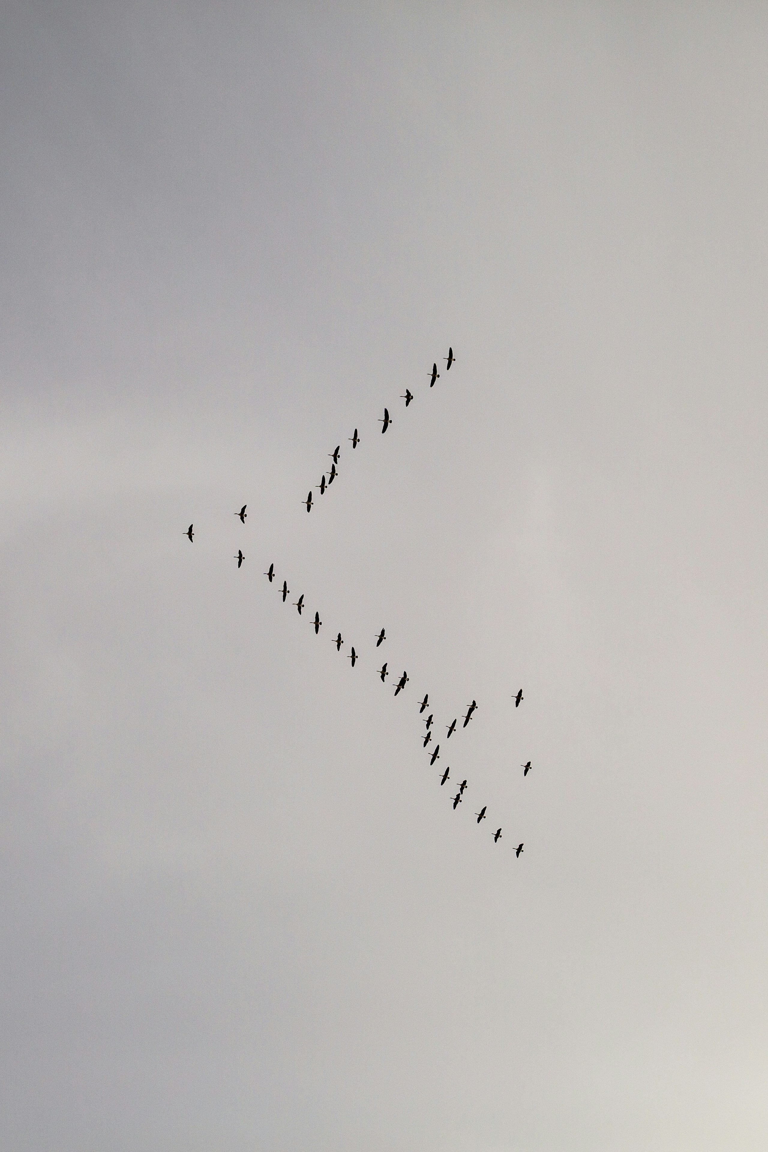 a flock of birds flying across a cloudy sky