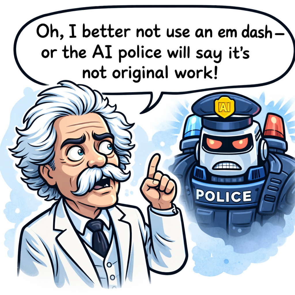 And if someone says that you used AI, and you didn’t — do this, put a bit of Mark Twain’s writing in and show that his was all AI.